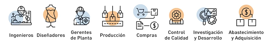 Profesionales y ejecutivos de la industria de manufactura y costura, incluyendo: